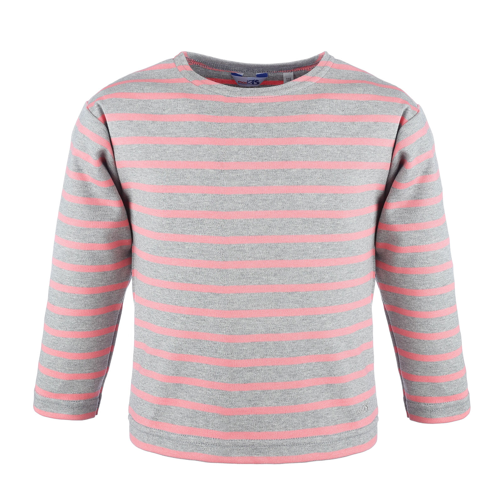 Rundhalsauschnitt bis Gr. 104 mit zwei seitlichen Schulternieten fürs bequeme An- und Ausziehen aus Bretonisches Kinder-Shirt100% elastisch gewirkter Baumwolle angenehm auf der Haut zu tragen. (ca. 225 g/m²)