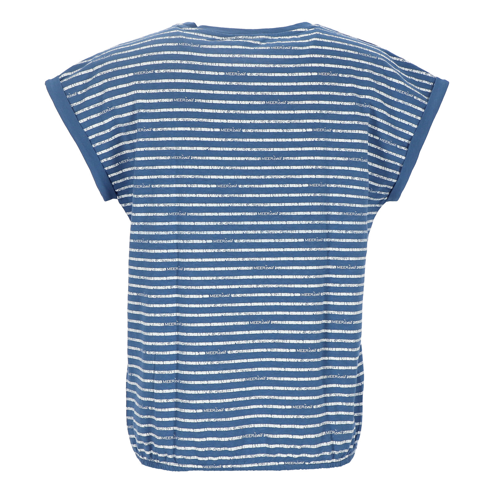 Locker geschnittenes T-Shirt mit maritimen Streifen. Der Schriftzug "MEERzeit" ist dezent in das Muster integriert. Mit Rundhalsausschnitt und kontrastfarbenen Ärmelabschlüssen – perfekt für einen entspannten Sommerlook am Strand oder in der Stadt.