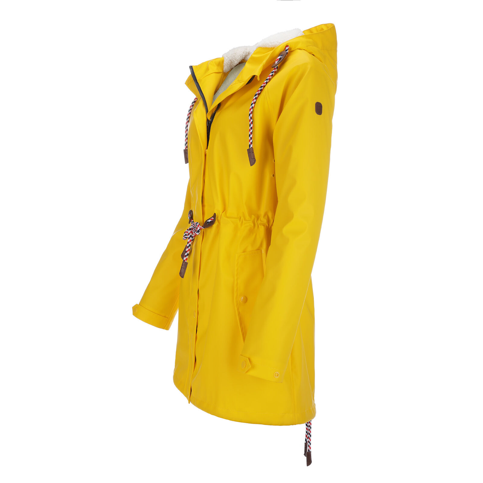 Der schicke Damen PU-Regenmantel ist der ideale Begleiter an kalten Tagen und unbeständigem Wetter.