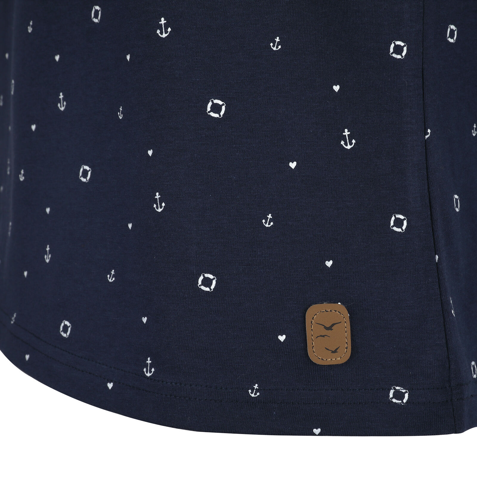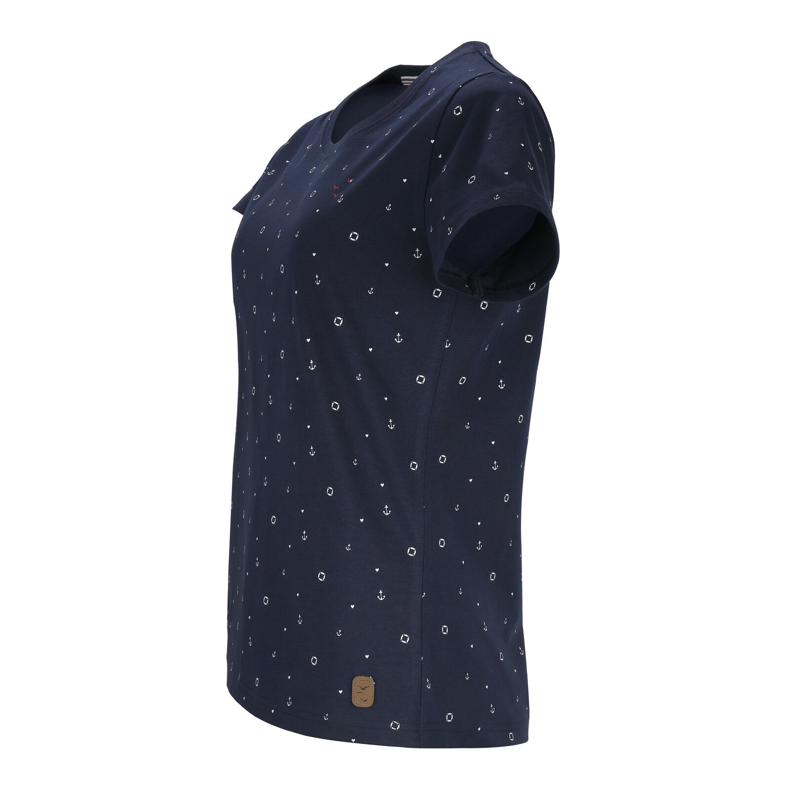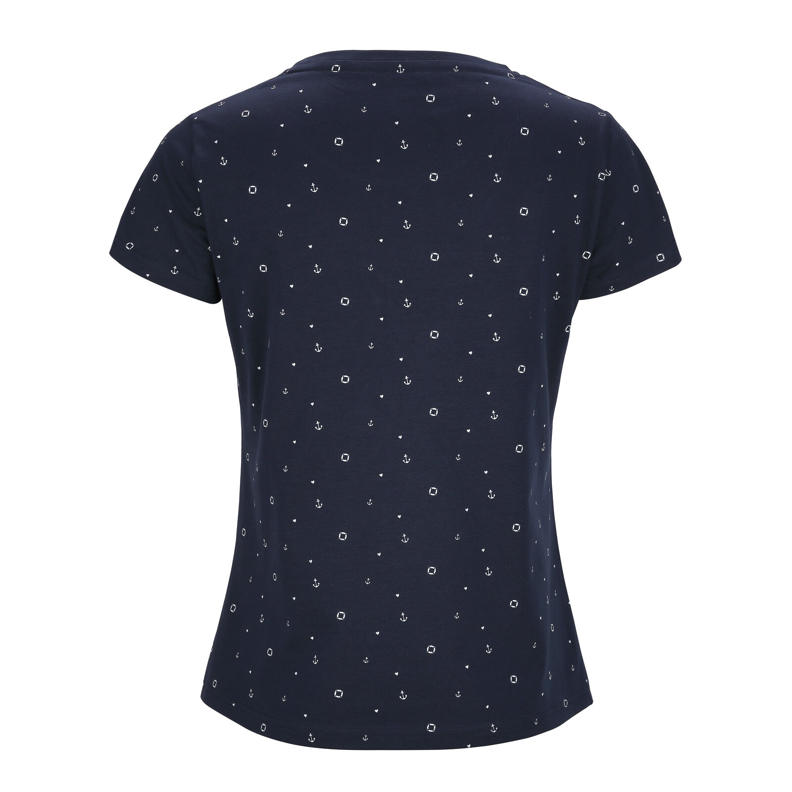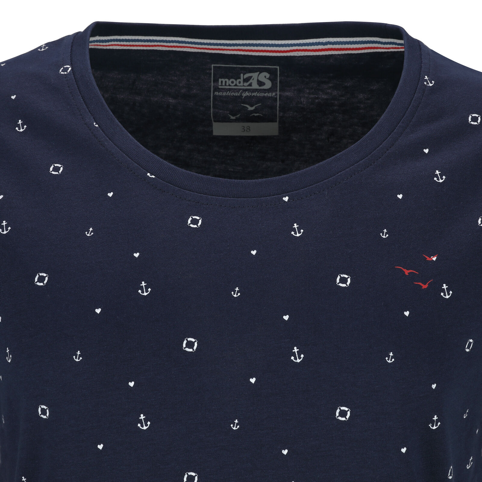 Ein attraktiver maritimer Print ziert das leicht tailliert geschnittene Damen-T-Shirt mit 1/2-Arm.