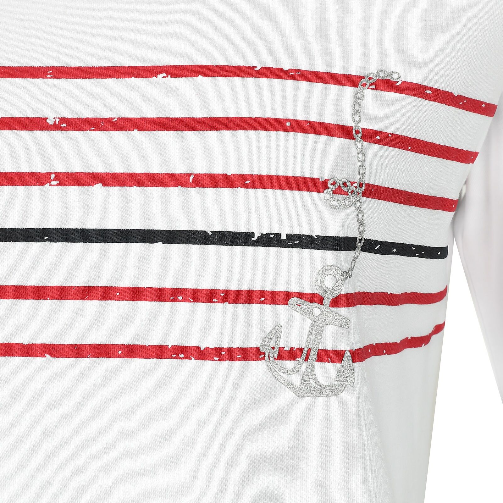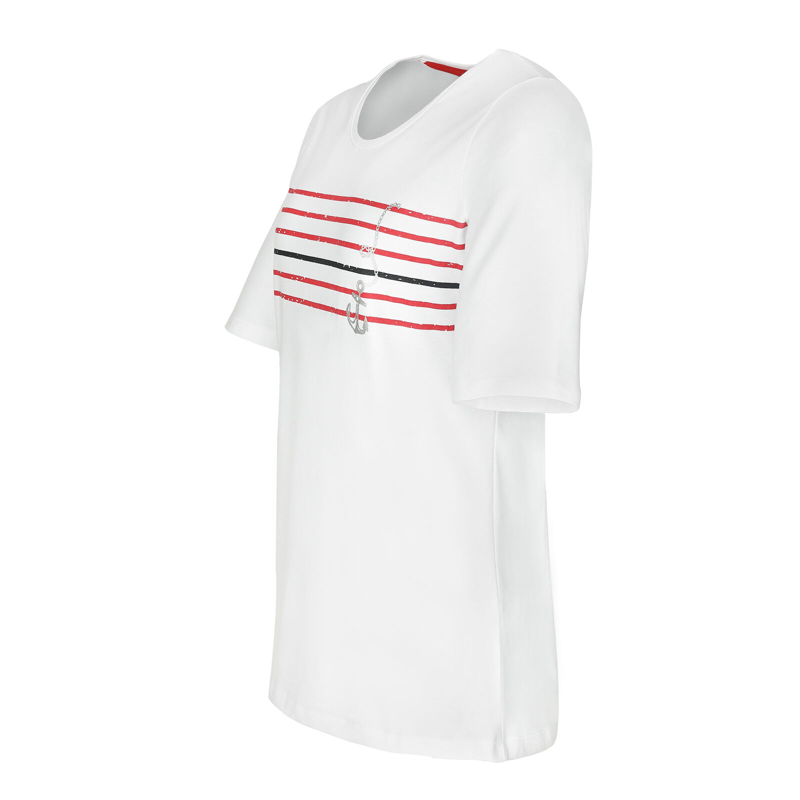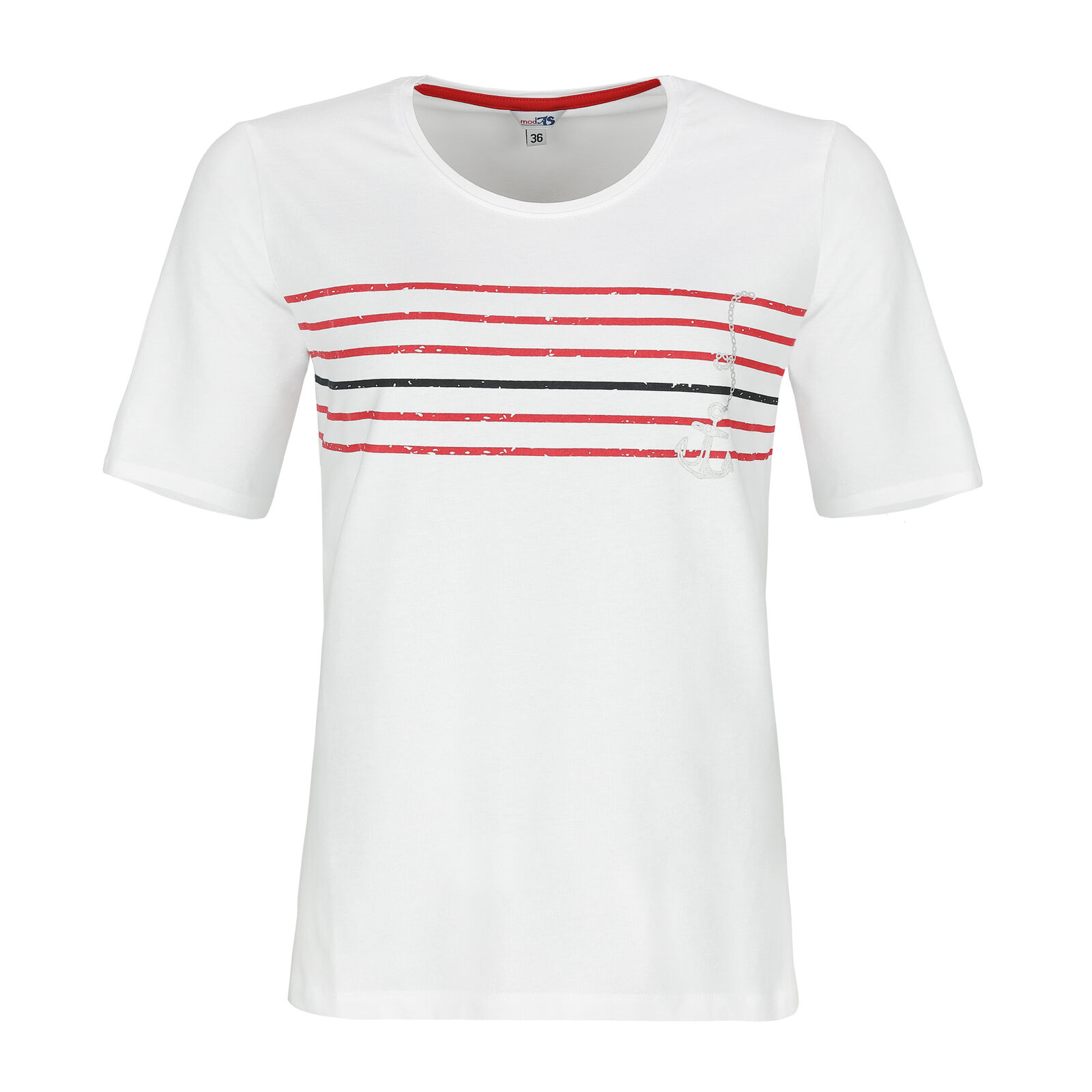 - Das leichte Damen-T-Shirt mit maritimen Aufdruck präsentiert sich elegant mit kurzen Ärmeln und einem Rundhalsausschnitt.