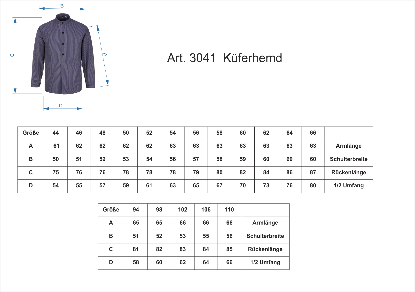 durchgehend geknöpft mit Innentasche Ärmel mit Keileinsatz und Bündchen 100% Baumwolle. (ca. 190 g/m²)