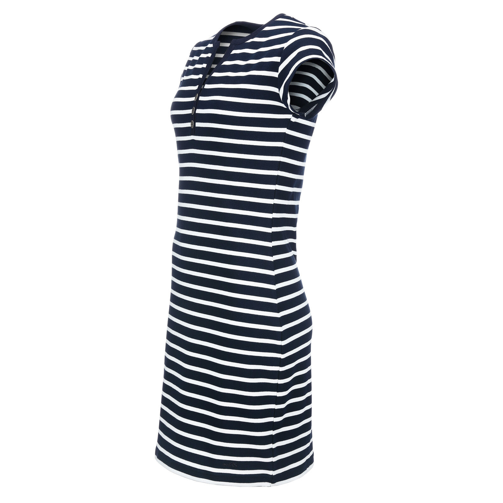 Kleid mit effektvoller dekorativer Knopfleiste am Ausschnitt figurumspielende Form 100% gewirkte Baumwolle. (ca. 225 g/m²)