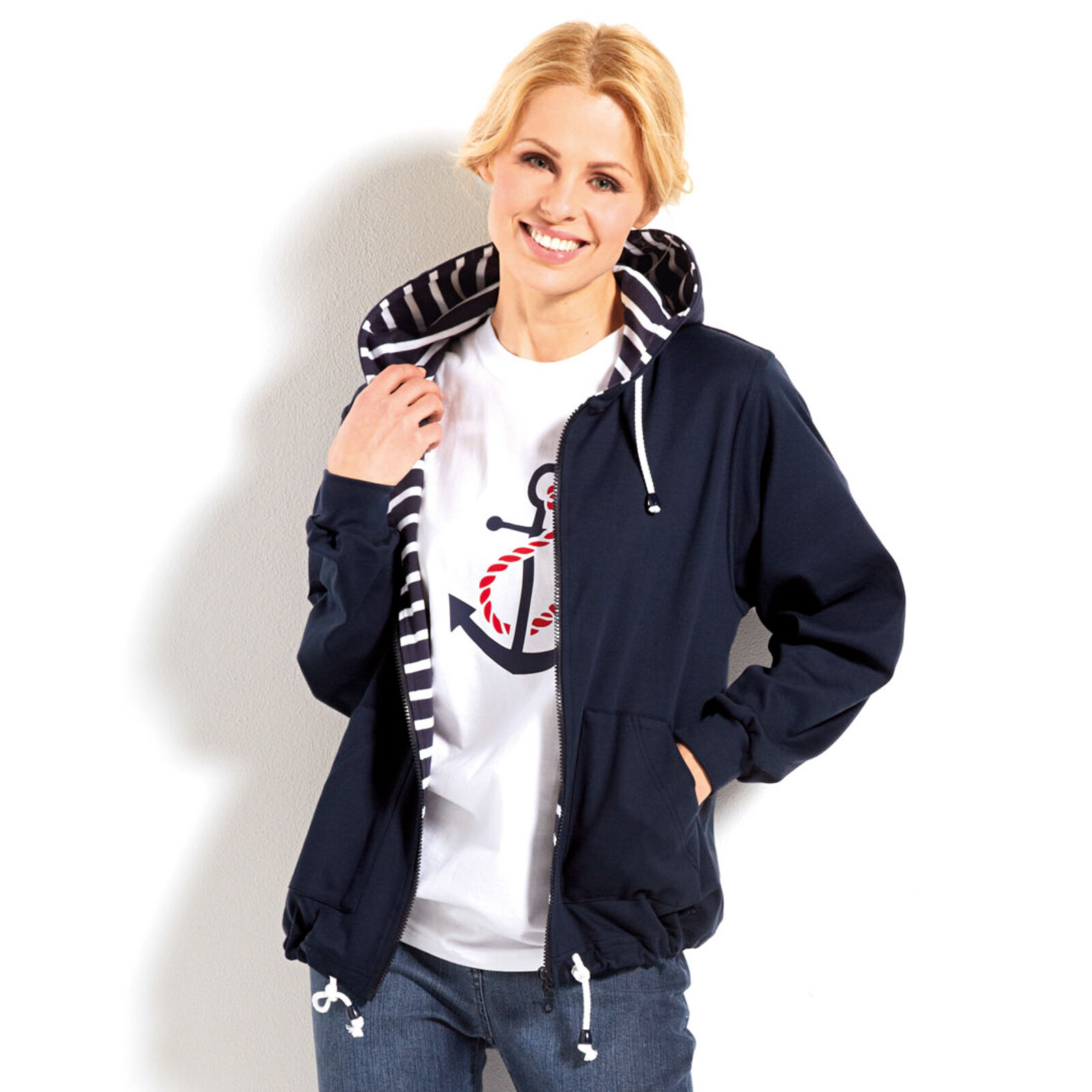 - Kapuze innen und Blende im Frontbereich gestreift abgesetzt