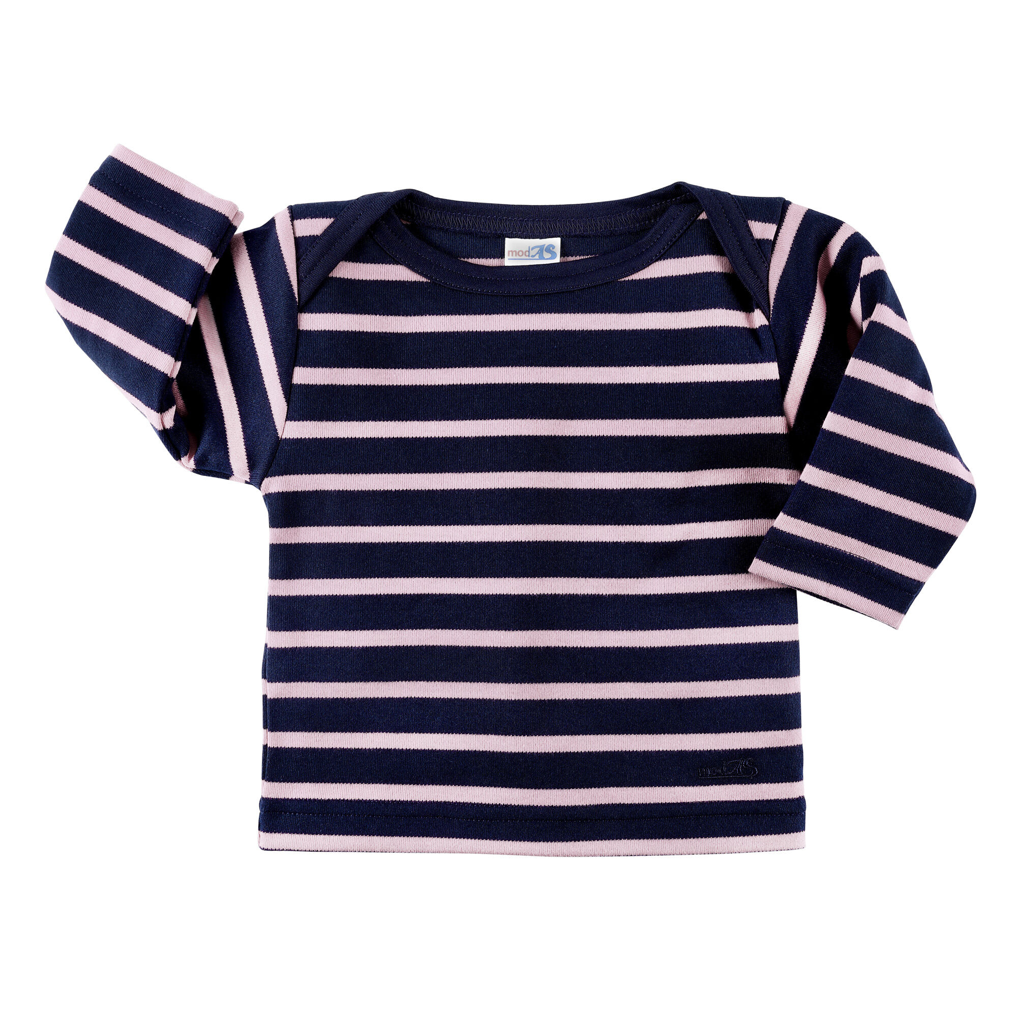 Rundhalsauschnitt bis Gr. 104 mit zwei seitlichen Schulternieten fürs bequeme An- und Ausziehen aus Bretonisches Kinder-Shirt100% elastisch gewirkter Baumwolle angenehm auf der Haut zu tragen. (ca. 225 g/m²)