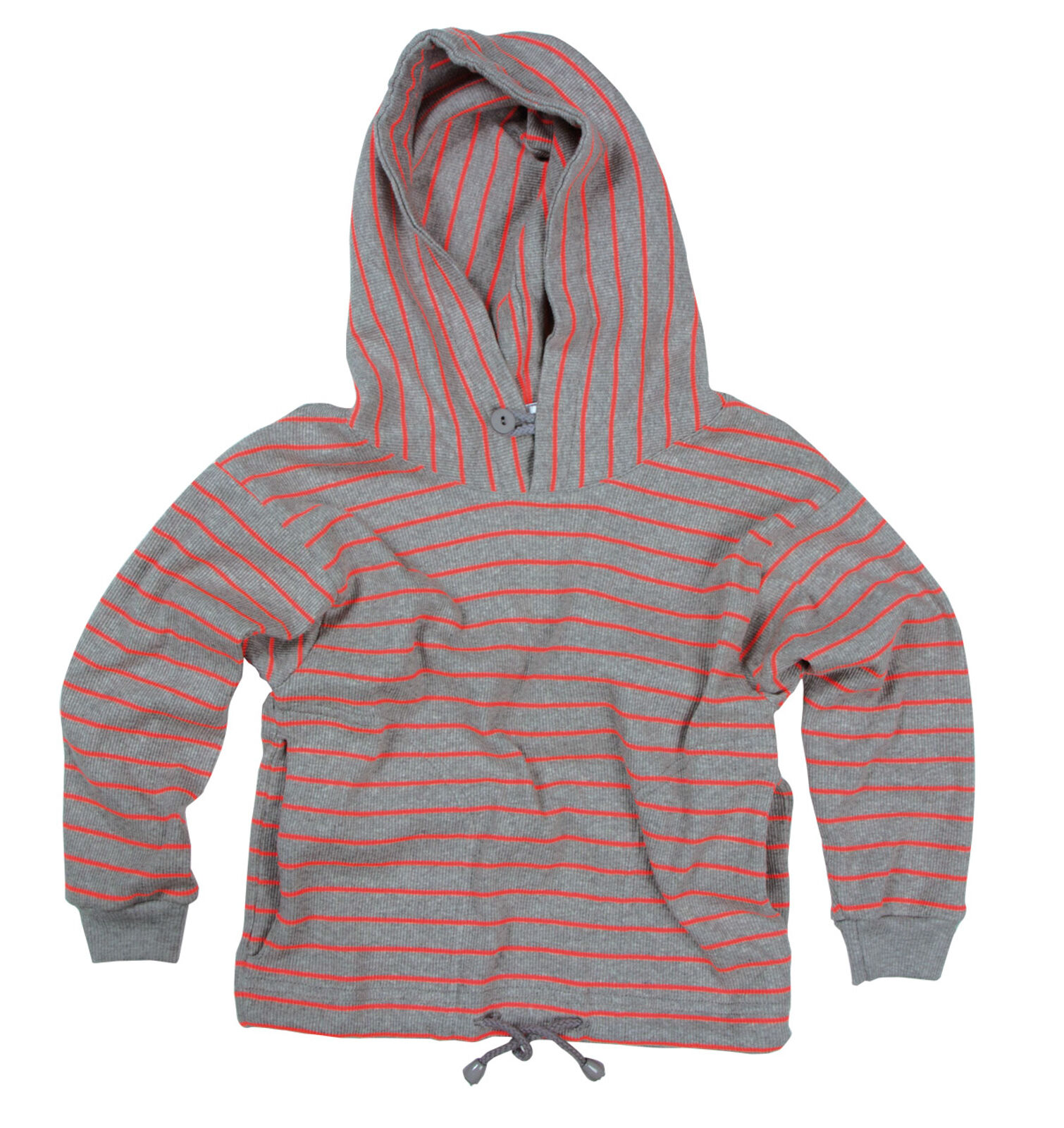 - Kapuze mit elastischem Gummizug und Knopf mit Schlaufe