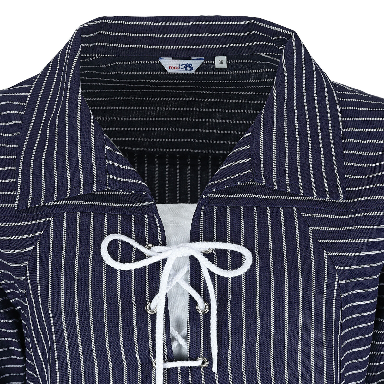 - V-Ausschnitt mit weißem Einsatz und Kordelschnürung